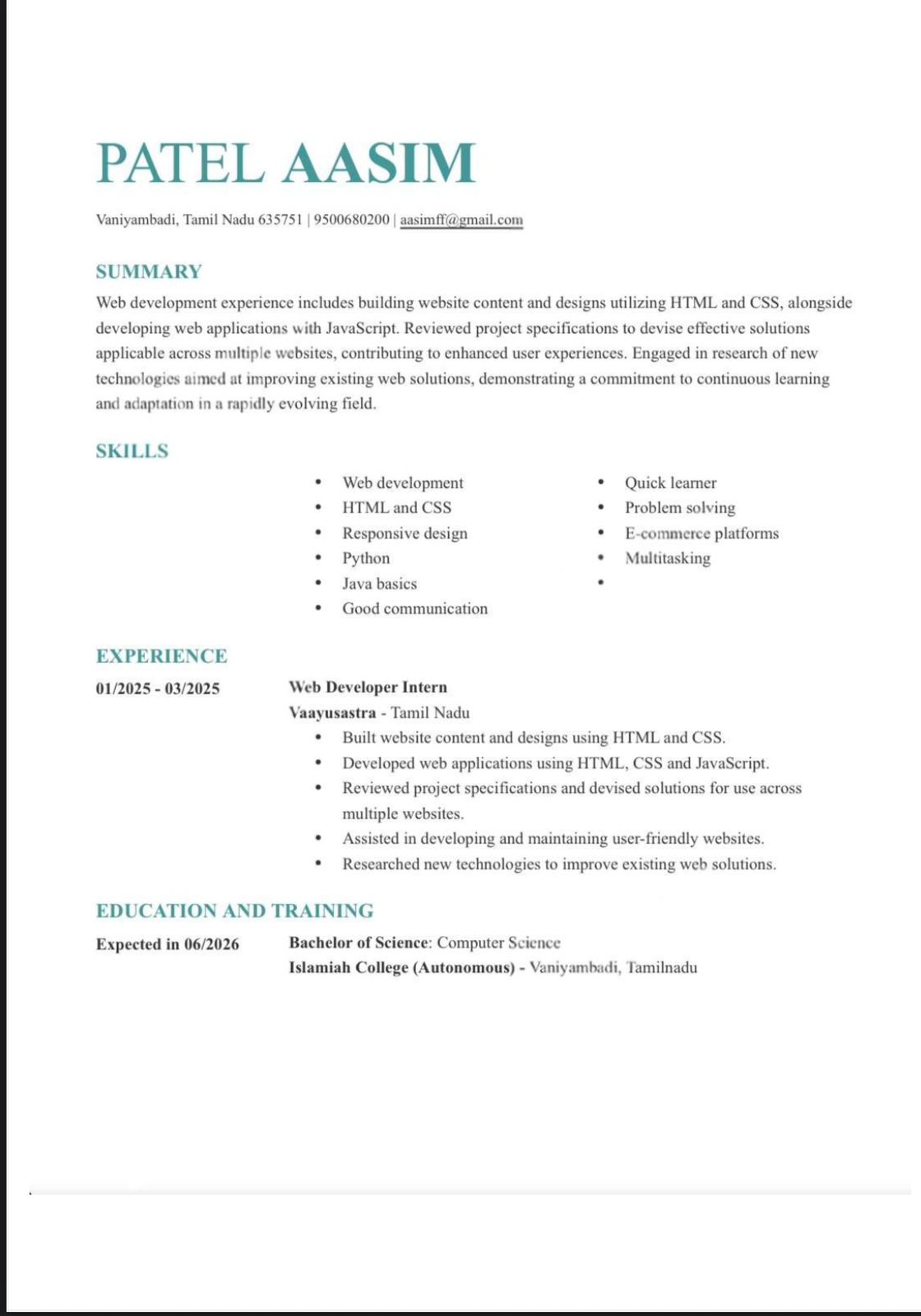 Islamiah College (Autonomous)I worked as an intern at Vaayusastra Pvt. Ltd., where I developed a complete E-Commerce website inspired by gaming merchandise, specifically focusing on action figures of popular game characters. During this internship, I gained strong hands-on experience in Python, Django, front-end development (HTML, CSS, JavaScript, Bootstrap) and real-world web deployment structure. I worked closely on both the client side and server side of the application, building product pages, user login–signup system, shopping cart, checkout functionality, and admin tools for product management. This internship greatly improved my understanding of full-stack development, database handling, UI designing, and problem-solving, and it played a key role in shaping my confidence as a web developer.